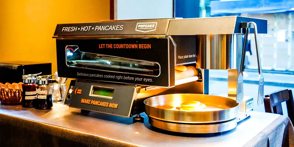 可以品嘗到美味煎餅的自動煎餅機器。