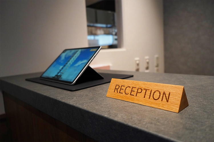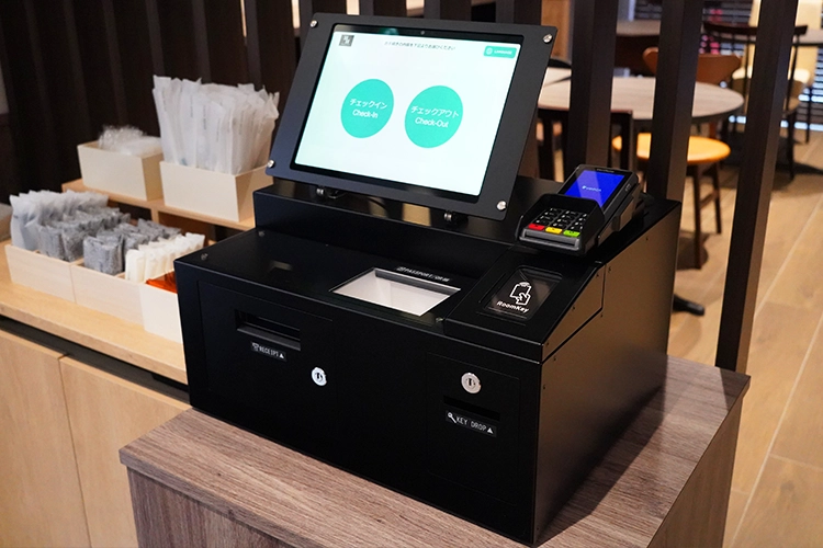 這是一款支持信用卡結算和提前結算的自動登記機。從預約檢索、辦理手續到發放房間鑰匙,即使人多的時候也可以進行非接觸&智能的登記入住。